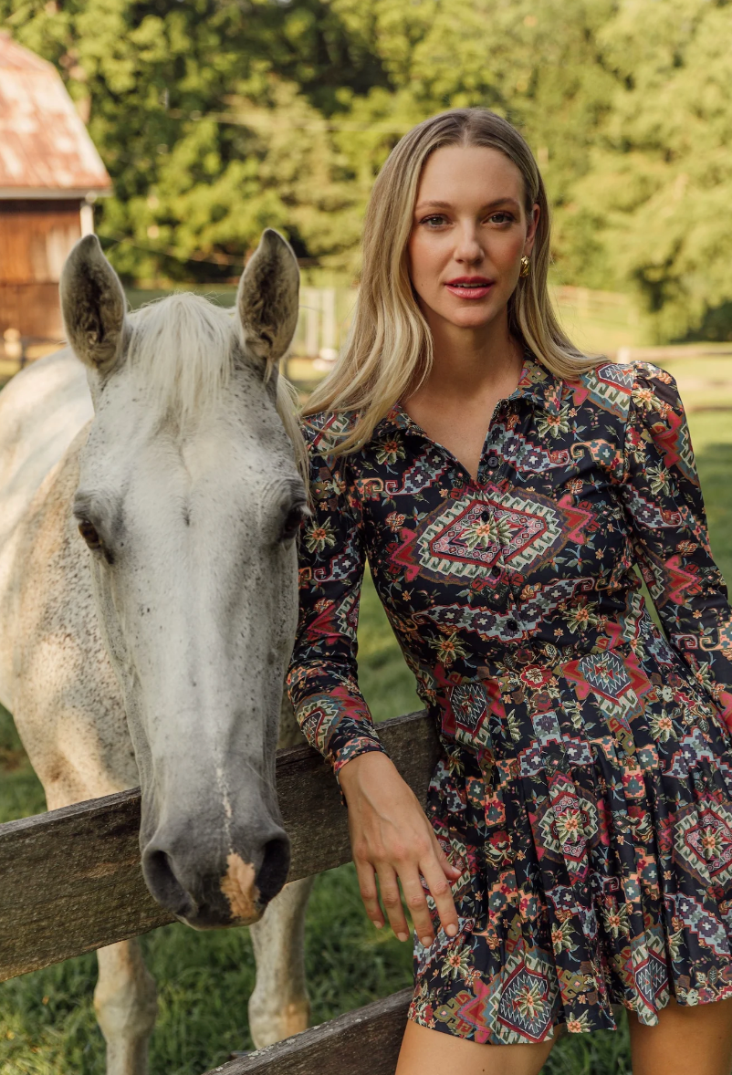Embrace autumn with the Portia Skirt in Bright Floral. This refined skirt features a vibrant floral pattern that captures the spirit of fall, complemented by an optional belt for a tailored silhouette. Its versatile design offers both comfort and style, making it an ideal addition to your seasonal wardrobe.