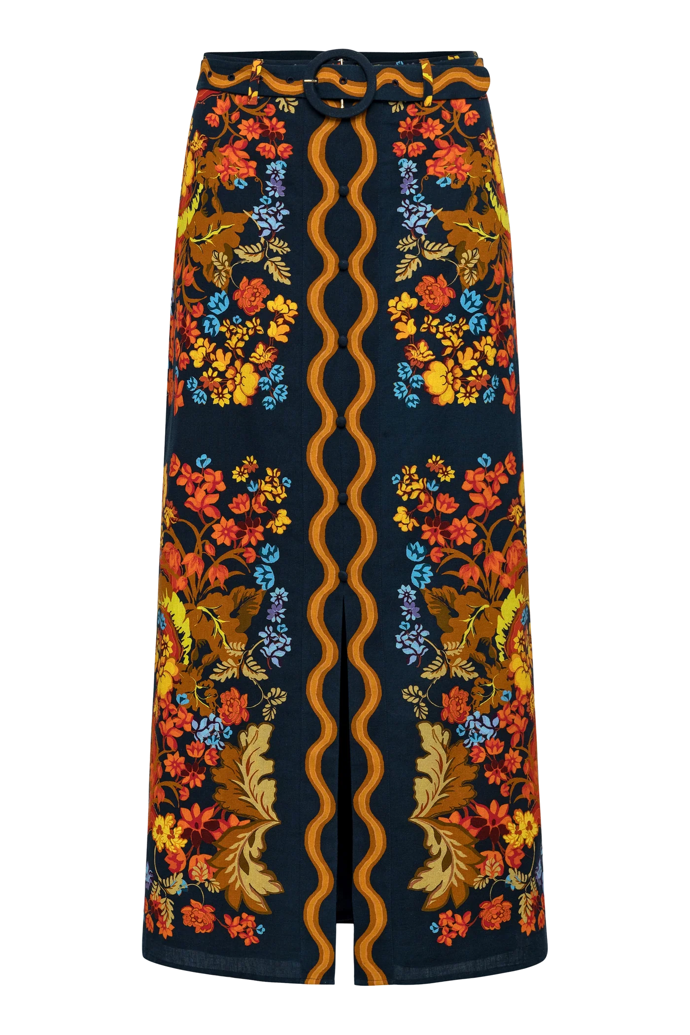 Embrace autumn with the Portia Skirt in Bright Floral. This refined skirt features a vibrant floral pattern that captures the spirit of fall, complemented by an optional belt for a tailored silhouette. Its versatile design offers both comfort and style, making it an ideal addition to your seasonal wardrobe.