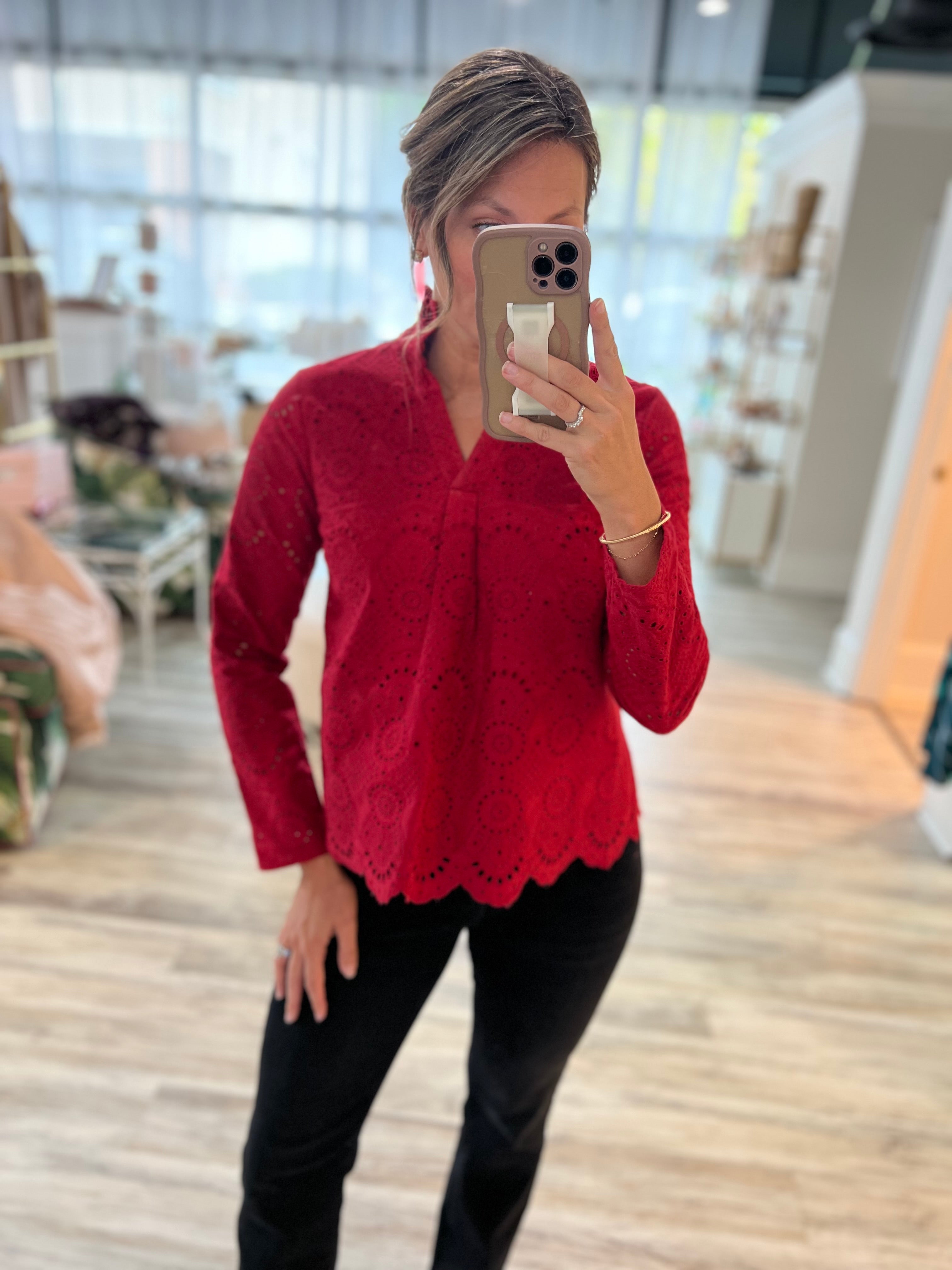 Scalloped Hem Top in Chili Pepper