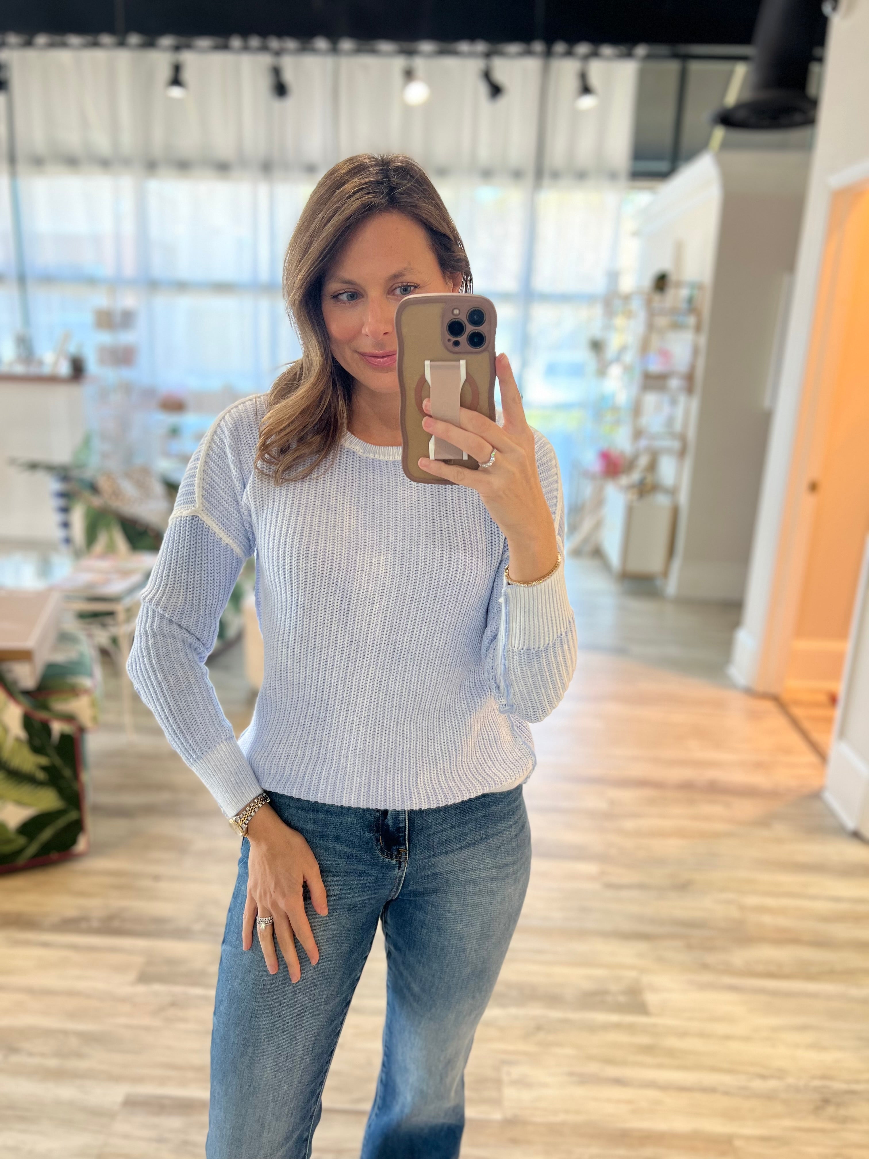 Whitewash Blue Sweater