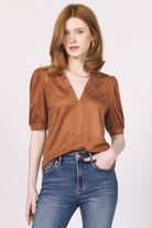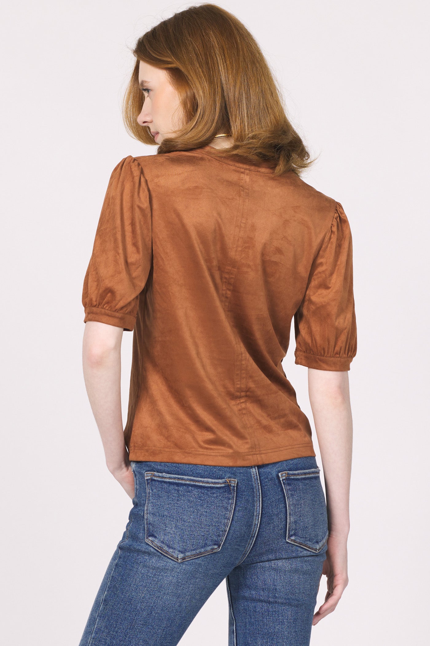 Elevate your wardrobe with the Kalia Suede Top, crafted from lightweight faux suede for a soft, luxurious feel. Its refined silhouette pairs effortlessly with your favorite denim, offering versatile elegance for day or evening wear. Experience comfort and style in one sophisticated piece.
