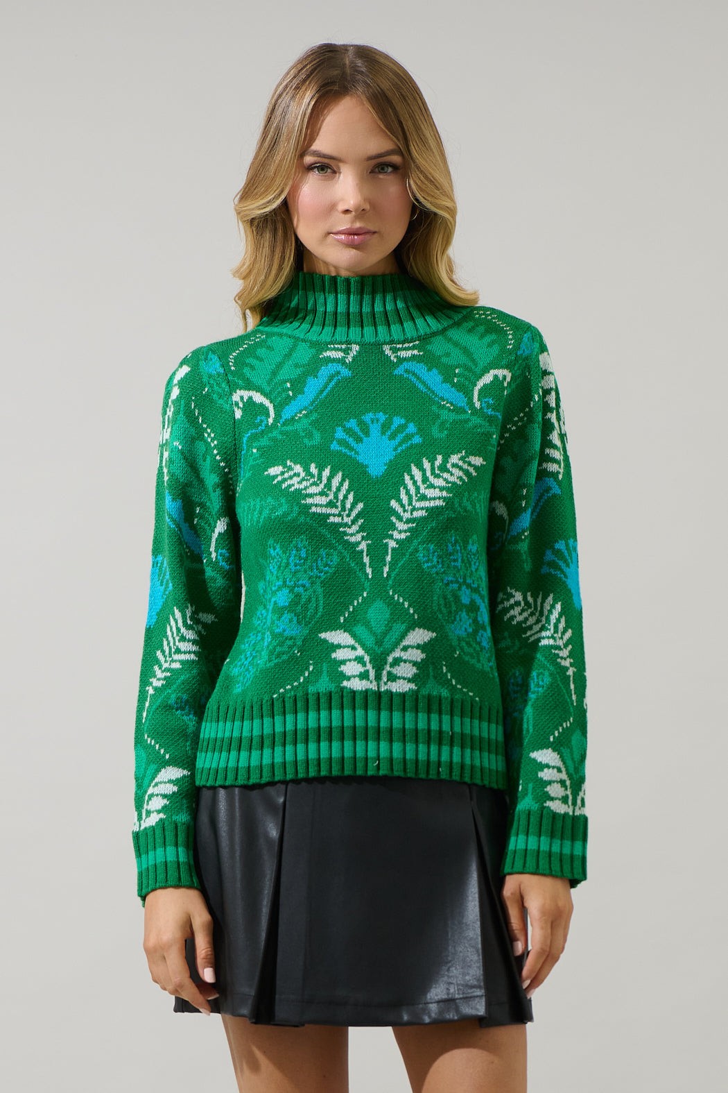 The color of the season - this gorgeous green sweater infuses vibrance to your fall wardrobe.