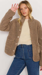 The cozy layer that your winter wardrobe needs. The Emma Sherpa Jacket is crafted in a soft, teddy-textured fabrication with a relaxed fit and snap-button front.