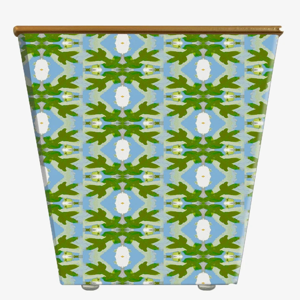 Handcrafted of composite material, wrapped in decorative paper, and finished with a burnished gold rim — four protective pads support its base. Proudly made in the USA!