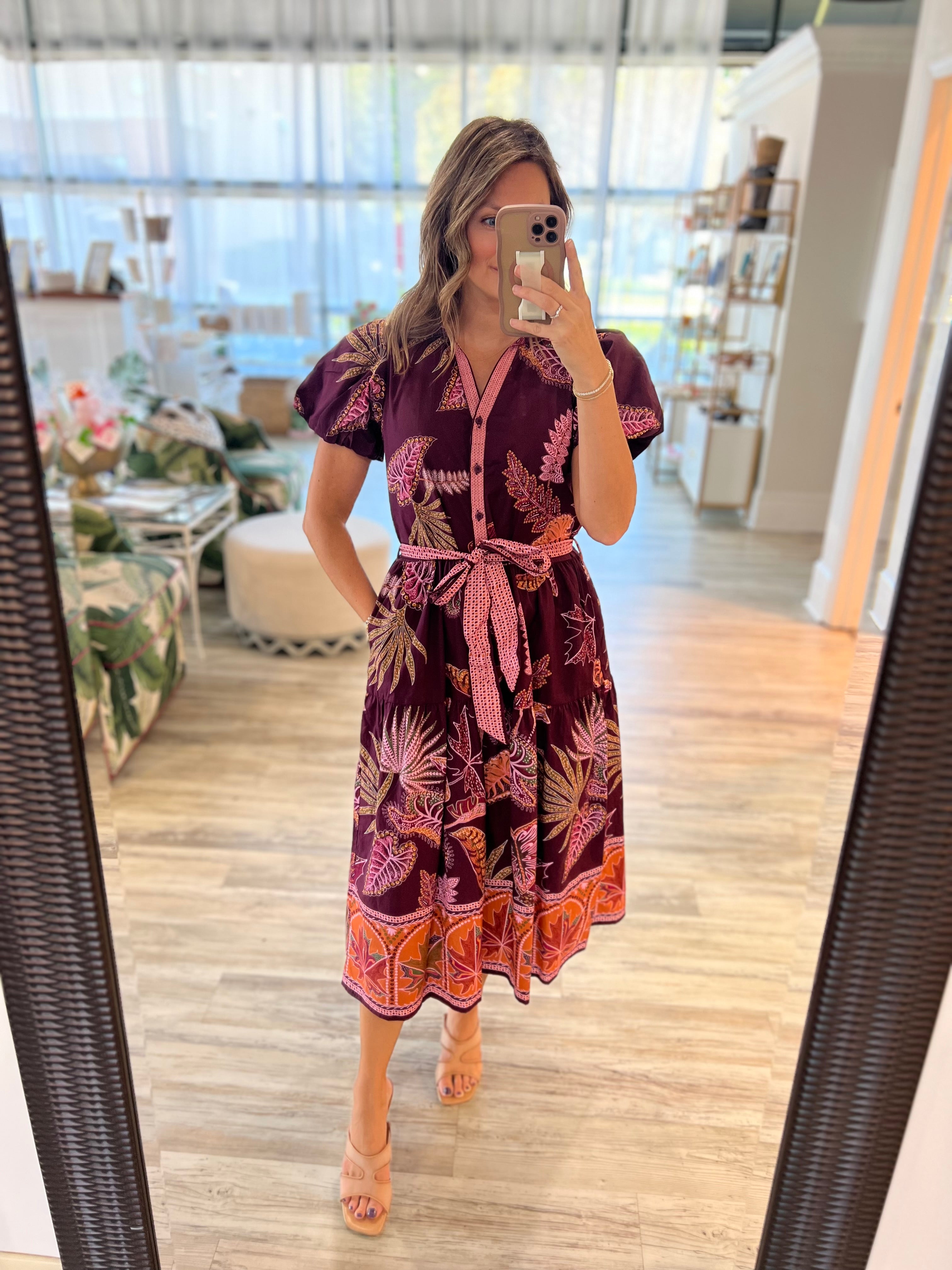 Puff sleeve midi - button front with sash.