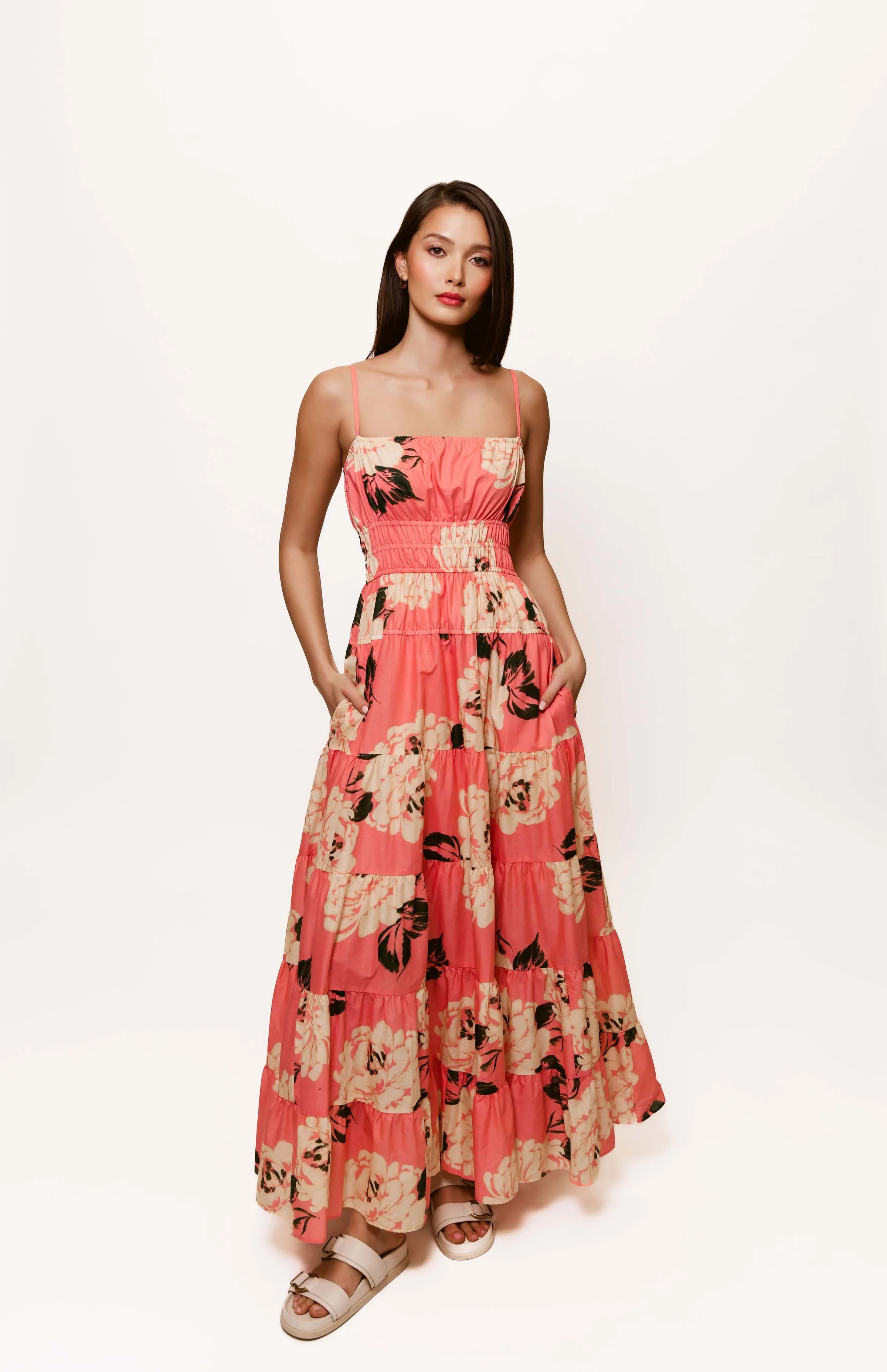 - sleeveless elastic waist bodice muti tiered maxi dress